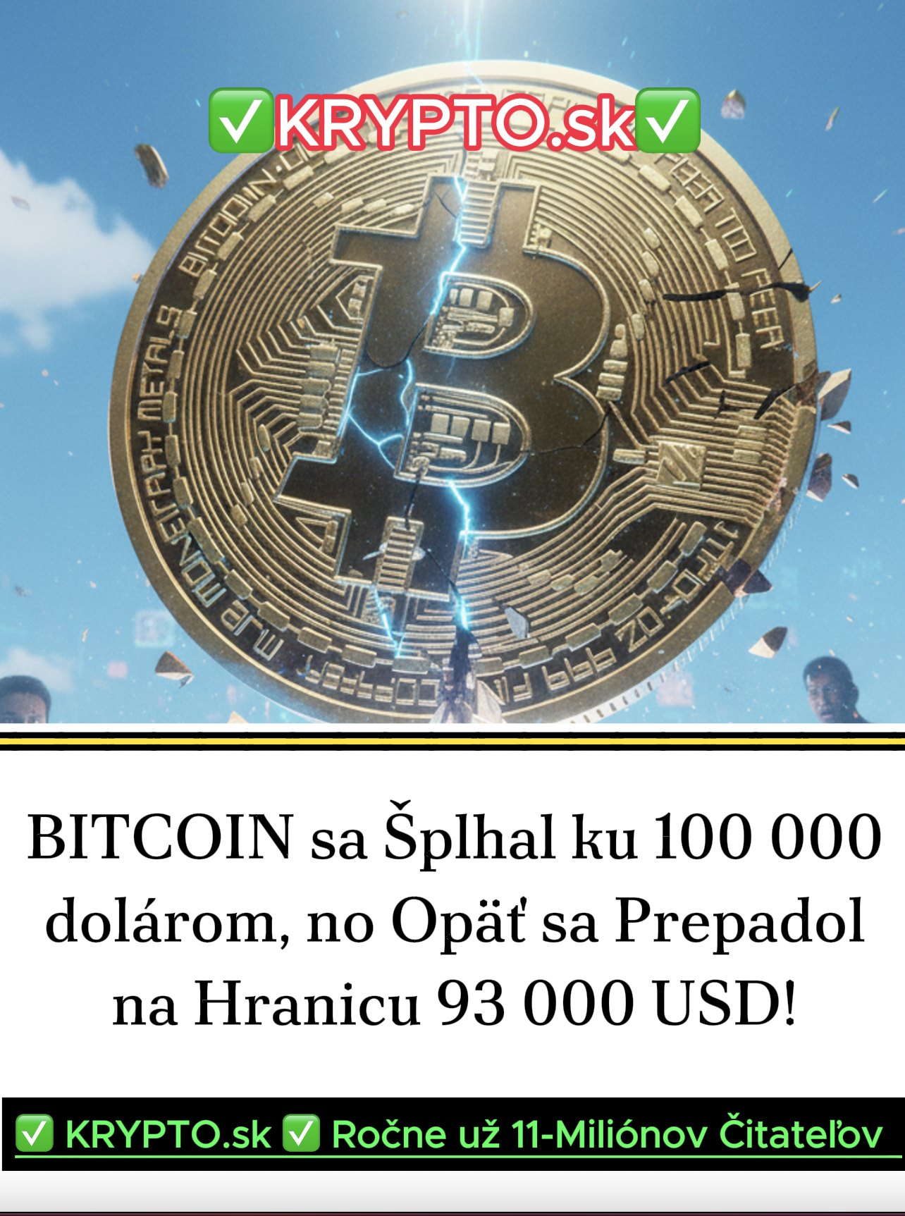 BITCOIN sa Šplhal ku 100 000 dolárom, no Opäť sa Prepadol na Hranicu 93 000 Amerických Dolárov!