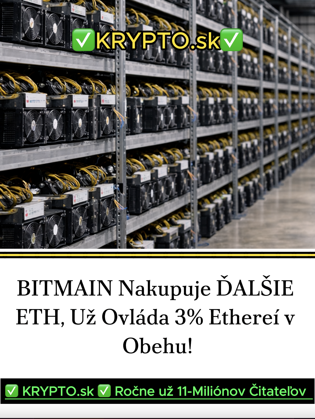 BITMAIN Nakupuje ĎALŠIE ETH, Už Ovláda 3% Ethereí v Obehu!